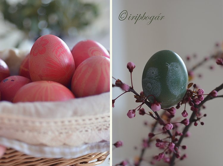 az egyik tojás elrepedt, de sajnáltam volna eldobni, így készült belőle üzenetet rejtő ajándék Hétfőre, egy kis felgöngyölített cetlit csúsztattam be a kis lyukon, benne az ünnepi üzenettel. Az interneten láttam ezt a kedves ötletet.